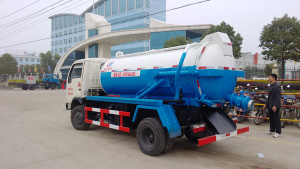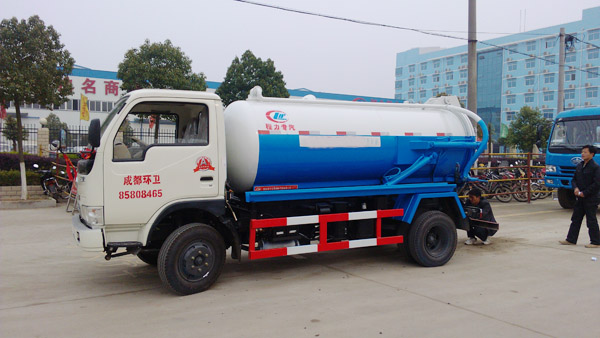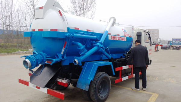 四川成都一客戶在我廠提走一臺特殊定制的東風勁卡吸污車,該吸污車選裝杭州威龍泵,進口和出口為特殊要求,進口為100的陽陽端,出口為150陽陰端(我廠標準配置為100的進口和出口,客戶選裝150出口主要考慮是100進口吸入污物后通過150出口出來就不會出現堵塞的情況,客戶考慮的還是比較周到的),加裝防溢報警裝置。