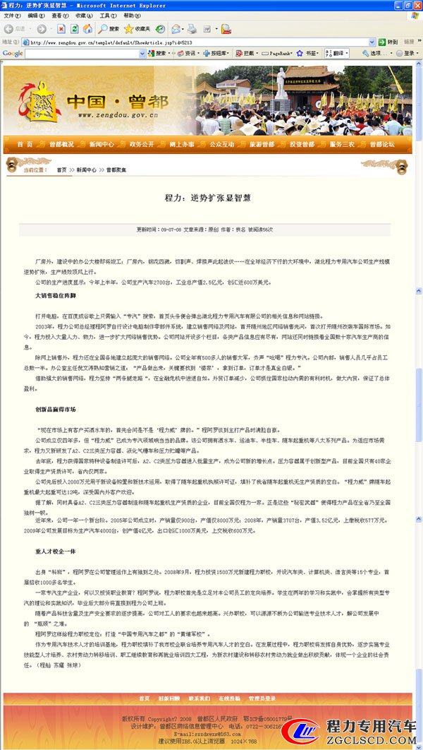 湖北程力專用汽車公司獲曾都政府網(wǎng)重點關(guān)注