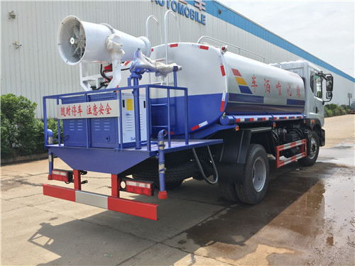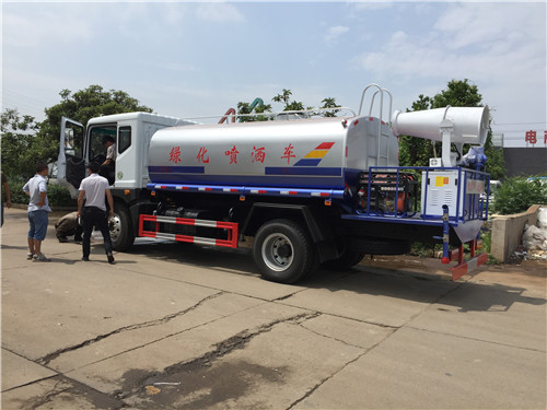 灑水車的工作平臺主要采用花紋防滑板制作而成,防滑板的厚度5毫米,平臺是寬度50-70公分,高度60-80公分,主要是便于工作人員安全操作而設計的尺寸,另外工作平臺上還設計的有腳踏板,便于工作人員上下,平臺上面安裝的綠化灑水炮,主要用于路面沖洗,園林綠化,以及應急消防。綠化灑水炮的工作狀態,可以360度旋轉,射程30米左右,可以調節成大雨、小雨、毛毛雨和柱狀。后灑裝置主要用于路面養護,噴灑寬度15米左右。側噴主要用于公路綠化帶噴灑綠化。