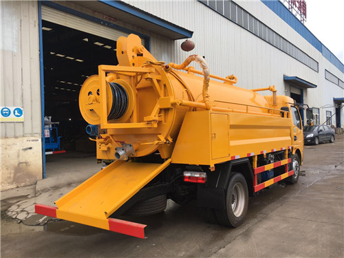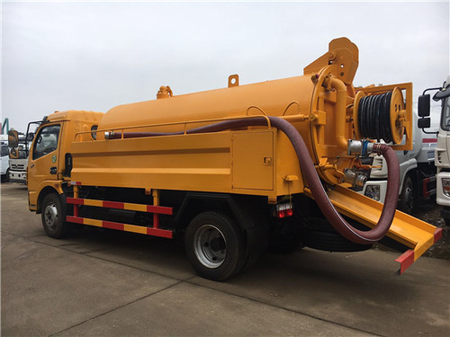 東風多利卡5方國五清洗吸污車專用部分由取力器、傳動軸、真空吸污泵、壓力罐體、液壓部分,管網系統、真空壓力表、視糞窗、洗手裝置等組成,隨車配置大功率真空吸污泵和優質液壓系統,罐體封頭一次壓鑄成型、罐體可后開、雙頂自卸。罐內污物可通過后蓋直接傾倒,具有真空度高(比吸糞車的吸力更大)、噸位大、效率高、用途更廣泛的特點。