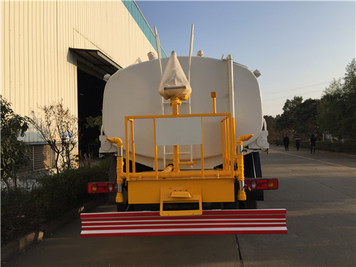 灑水車前噴頭位置較低,靠近地面,噴灑壓力較大,可用于沖洗路面;后噴頭位置較高(灑水車后噴頭一般左右各安裝一個),灑水面較寬,可用于公路施工灑水,使用后噴頭時,應將前噴管關閉;使用可調噴頭灑水時,灑水寬度可根據需要調整。灑水寬度越寬,中間重疊量越少,灑水密度越均勻。