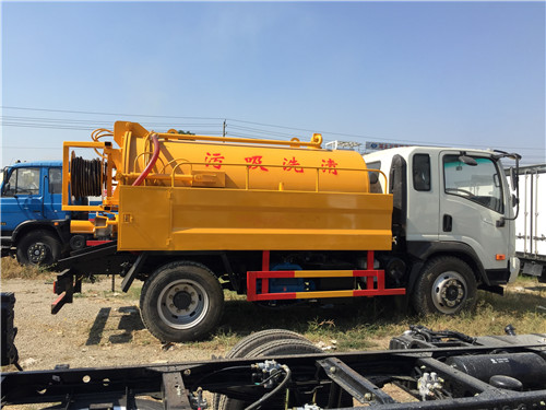 上裝配置:罐體采用優質Q235武鋼5mm碳鋼制作,罐體采用一次壓鑄成型,封頭6mm,吸污罐體容積4方,水罐2方,帶視污窗,安裝有防溢閥,億豐真空泵或SK-6水環式真空泵,帶6米內鋼絲防變形吸污管,配100mm排污球閥,罐體帶液壓舉升系統,后蓋液壓打開、關閉。罐體內有隔襯板,防止吸污罐變形。