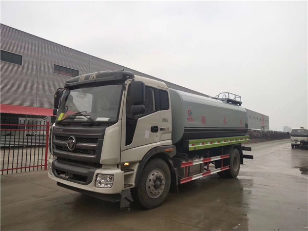 原廠灑水車上裝配置:罐體容積為15立方灑水車,罐體鋼板為4mm碳鋼Q235材質,罐內隔板具有防波作用,以減輕汽車行駛時罐體液體沖擊,罐體及整車外形尺寸按照公告。帶大功率專用灑水泵,泵可自吸自排,整車前沖、后灑、側噴、帶65消防接口,后平臺帶綠化灑水炮,灑水炮可全方位旋轉,可連續調成直沖狀、大雨、小雨、毛毛雨;前封頭帶水位計,后平臺主管路帶1寸澆花接口,后爬梯。平臺后部帶小安全告知牌:“隨時停車,注意安全”,帶兩根水管及陰陽端。罐體顏色:上白/下藍,銀灰/銀藍,罐體兩側噴“灑水車、綠化噴灑車”字樣,貼反光標示。