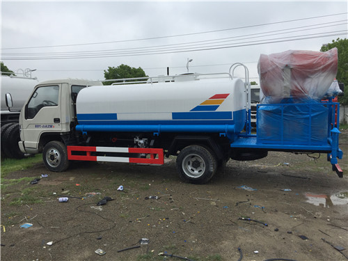 福田2噸不上牌抑塵車改裝配置:罐體用4MM碳鋼板制作,罐內隔板具有防波作用,以減低抑塵車行駛時罐體液體的沖擊。整車帶一個專用灑水泵(垂直最大吸程6米),灑水寬度14米,射程28米。抑塵車配備2個前沖(噴)(能將路面泥巴、塵土、垃圾沖干凈);2個后灑(能均勻地將水灑在路面,一次灑水寬度14米)、2個側噴(花灑)(能均勻地將路旁綠化帶澆灌)、帶1個后工作平臺,平臺上安裝1個綠化灑水高炮(灑水炮可全方位旋轉,可連續調成直沖狀、大雨、小雨、毛毛雨,霧狀可調節沖洗高大樹木),引水時間<5min,流量90m3/h。帶1個消防接頭,帶1個自流閥,1個過濾裝置、人性化爬梯及側防護欄,安裝灑水音樂喇叭。