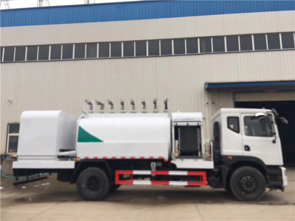 2.爆破抑塵車效率高、射程遠(yuǎn)、覆蓋面積大、水霧且均勻、抑塵效果好。水霧與飄在空中的塵埃接觸時(shí),被塵埃所吸附,加大塵埃的比重,抑制塵埃在空氣中的流動(dòng),并加速塵埃沉降,實(shí)現(xiàn)對(duì)空氣的凈化。