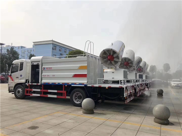 一種就是城市里面使用的抑塵車,抑塵車又稱為:霧炮車、噴藥車。霧炮車噴射的水霧顆粒達(dá)到微米級(jí),能有效分解空氣中的污染顆粒物、塵埃等,在霧霾天氣下用于降塵除霧,可以有效的緩解霧霾,其節(jié)水的特性同樣也可以用作灑水車使用。霧炮車還可以降塵、灑水,把樹上的灰塵洗掉。霧炮車噴灑出的水霧與懸浮在空氣中的PM2.5和PM10粉塵顆粒吸附、聚合、沉降,達(dá)到消除污染物和減霾的目的。盡管霧炮口徑巨大,但其噴灑耗水量?jī)H為傳統(tǒng)灑水車的兩到三成,覆蓋面積和除塵效率卻高出20倍。既提高效率,也避免路面積水影響交通。