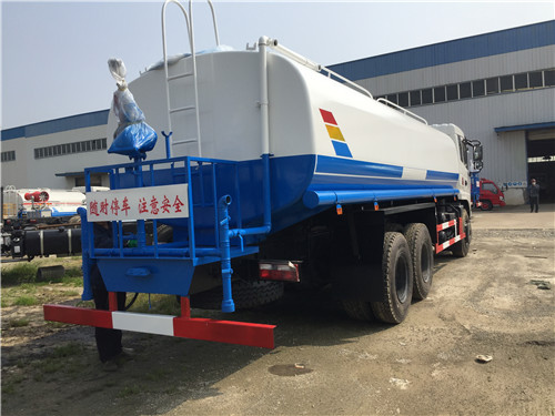 淋雨試驗檢測油罐車的密封性和腐蝕性,之后,進入質檢車間。我們看到一臺罐車停在一排噴頭的下面。這是在進行淋雨試驗,實際就是檢測罐車的密封性。反光標識粘貼、后圍欄安裝等都是在這個車間完成。