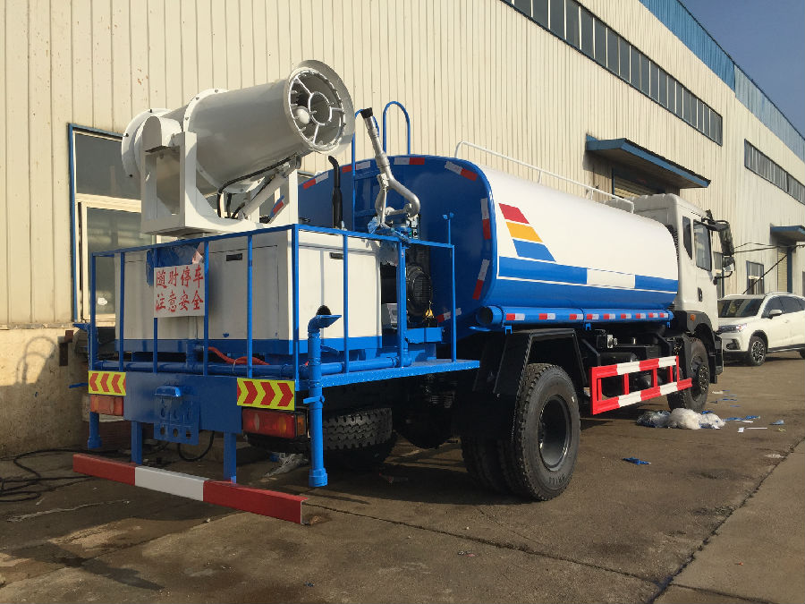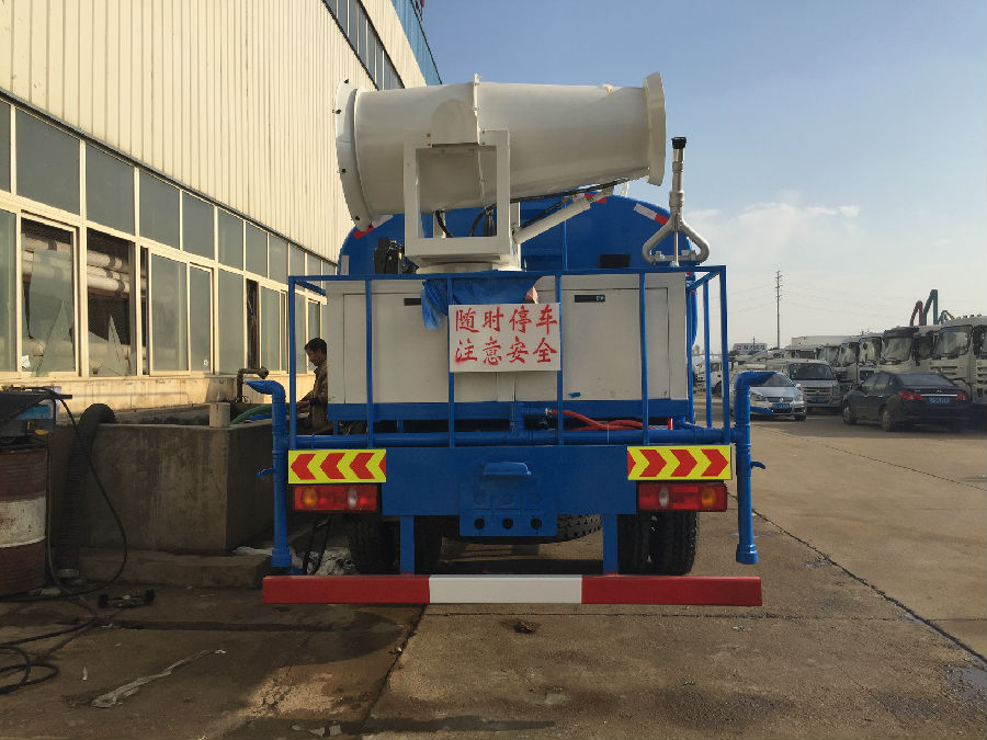 單橋可裝50-60米噴霧機(jī)車型,閃亮登場(chǎng)。整車型號(hào):DLQ5180GSSL5,底盤型號(hào)EQ5180GLVJ,東風(fēng)新款T5駕駛室,4500MM軸距,國五,康機(jī)190馬力,陜齒小八檔變速箱,帶原裝ABS。前沖后灑,后工作平臺(tái)帶高炮,右位花灑,側(cè)噴。前橋5噸,后橋10噸,10.00鋼絲胎。后平臺(tái)上加裝50米霧機(jī),水平射程50--55米,發(fā)電機(jī)組30KW,風(fēng)機(jī)電機(jī)11KW,水泵電機(jī)3KW。