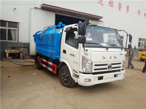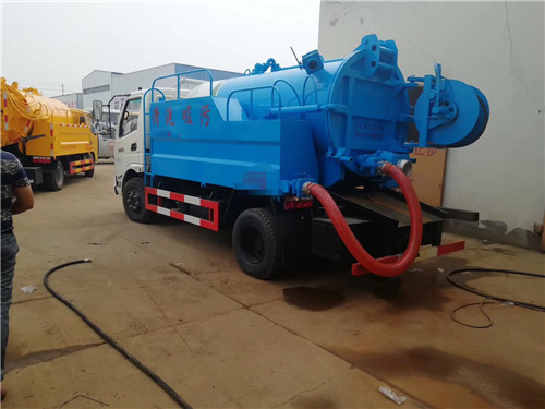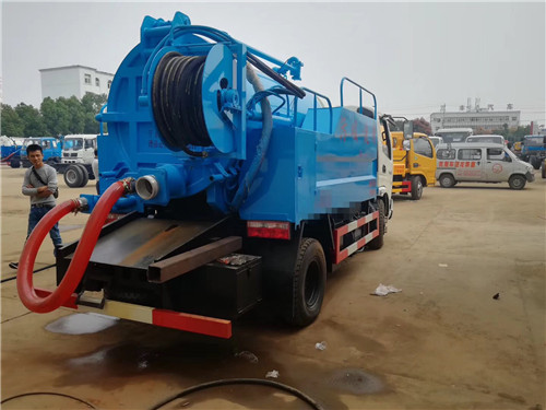 藍牌高壓清洗吸污車分為水罐和吸污罐,清水罐置入罐體兩側,容積2.4方,通潔高壓清洗泵最大壓力24兆帕,170流量,采用全功率夾心取力器驅動,三通高壓分配閥內芯為不銹鋼制作。配10個不同型號的高壓噴嘴,并印有編號和使用壓力,油泵和馬達,多路閽均采用知名品牌。吸污罐4立方,采用億豐真空泵,罐體尾部100自流口(可根據用戶要求安裝2個),6米吸污管,吸污罐與水廂活動接頭相連,可以用吸污罐裝水做單一的高壓清洗用。