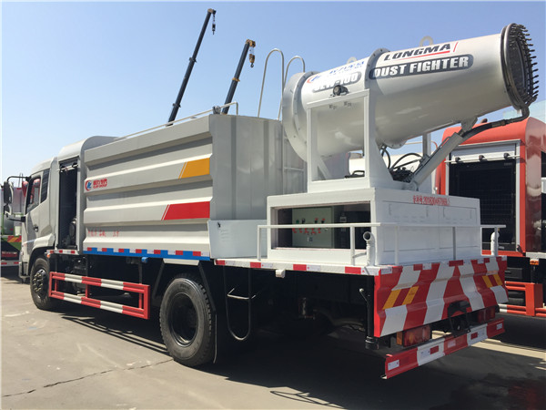 本車具有獨立的高、低壓兩套水路系統,為抑塵車工作提供壓力水源。其工作原理是:利用高壓水泵產生的高壓水,經噴水架的高壓噴嘴噴出,利用高壓水流的動能,以高壓力、低流量的方式抑塵,超遠射程,高效節水,能將路面的陳舊污漬抑塵干凈;或高壓水經左(右)角噴噴出,清洗路緣、人行道及護欄隔離區;使用高壓噴槍還可抑塵路標、廣告牌、高架路等;噴霧系統具有強大的噴霧降塵、噴撒空氣消毒劑及調節空氣濕度功能。