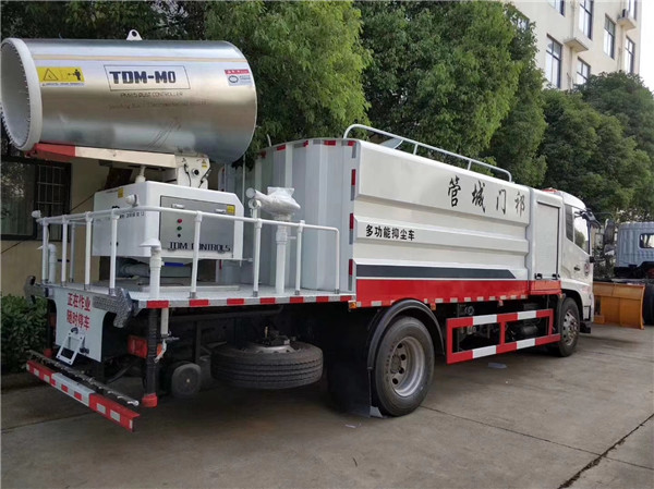 東風天錦多功能抑塵車,方形折彎箱體,容積10.3方,配專用灑水泵(可自吸自排),前沖、后灑、側(cè)噴、平臺高炮(高炮射程水平可達28米),可選裝30-120米普通霧炮,也可配置大功率全液壓霧炮(車子自身發(fā)動機通過夾心取力器帶動大功率液壓泵,從而帶動風機轉(zhuǎn)動;電動遙控控制風機左右、上下轉(zhuǎn)動和出水量)優(yōu)點:功率大,噪音小,射程更遠,更加環(huán)保。