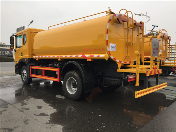 以上情況僅適合于正常使用雙向前沖噴頭的環衛灑水車,如果只是用于壓塵降溫而使用后灑和側噴,其流量則相應減少,噴灑距離會更長。有些用戶希望灑水車流量越大越好,這是比較片面的想法。灑水車流量大,則灑水距離變短,加水次數增多,經濟性欠佳;從路面沖洗來說,水流過大,容易造成低洼處積水,灰塵較多的地方容易形成泥濘帶,干燥后出現塵土飛揚的現象。