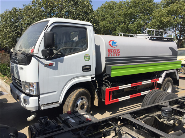 東風5噸灑水車底盤配置:采用福田單排不帶翻轉駕駛室,全柴480發動機,軸距3300mm,600尼龍胎,油剎,不帶方向助力,帶暖風不帶制冷。