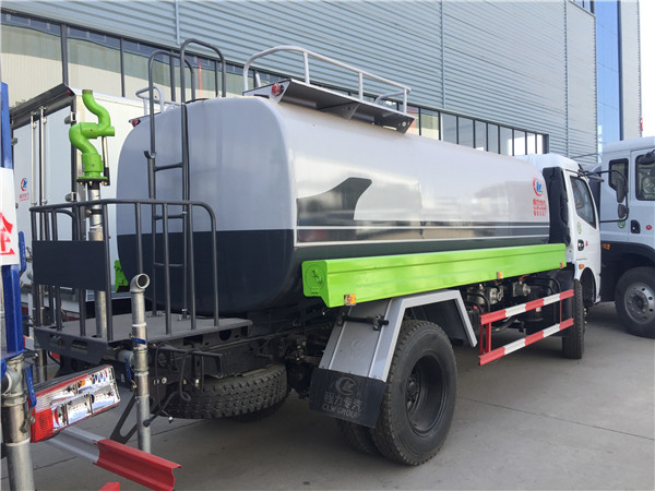 東風5噸不上牌灑水車改裝配置:罐體用4MM碳鋼板制作,罐內隔板具有防波作用,以減低灑水車行駛時罐體液體的沖擊。整車帶一個專用灑水泵(垂直最大吸程6米),灑水寬度14米,射程28米。灑水車配備2個前沖(噴)(能將路面泥巴、塵土、垃圾沖干凈);2個后灑(能均勻地將水灑在路面,一次灑水寬度14米)、2個側噴(花灑)(能均勻地將路旁綠化帶澆灌)、帶1個后工作平臺,平臺上安裝1個綠化灑水高炮(灑水炮可全方位旋轉,可連續調成直沖狀、大雨、小雨、毛毛雨,霧狀可調節沖洗高大樹木),引水時間<5min,流量90m3/h。帶1個消防接頭,帶1個自流閥,1個過濾裝置、人性化爬梯及側防護欄,安裝灑水音樂喇叭。