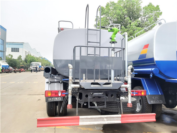 東風天錦12噸灑水車改裝配置:罐體采用4MM厚武鋼專用容積板制作,容積12立方,東風天錦12噸灑水車前沖(噴)后灑,帶側噴,罐體后帶工作平臺,平臺上安裝綠化灑水炮,灑水炮可全方位旋轉,可連續調成直沖狀、大雨、小雨、毛毛雨,帶安全護欄,配備全國質量評比第一名的大功率專用灑水泵,泵可自吸自排,安裝過濾網,帶消防接口,可通過消防栓進水,帶自流閥,隨車選裝20米綠化卷盤,可噴灑農藥。用戶可選裝消防大功率消防水泵、應急時可做消防灑水車使用。