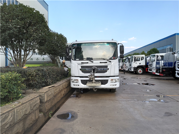 環衛灑水車的前端裝有鴨形噴嘴或圓頭沖嘴,后面裝有圓柱開灑水噴嘴或蓮蓬頭噴嘴,后部有一工作平臺,裝配有水炮,后部還可裝8個噴嘴(選裝)。噴水器一般用于沖洗街道,起除塵和降溫作用,其噴水器可以用調節噴嘴螺紋的方法改變噴水器的噴灑方向和角度,高射水炮可以用于城鄉園林綠化及應急消防。蓮蓬嘴可以澆落路中間噴水器沖起的灰塵,起到清潔空氣的作用。