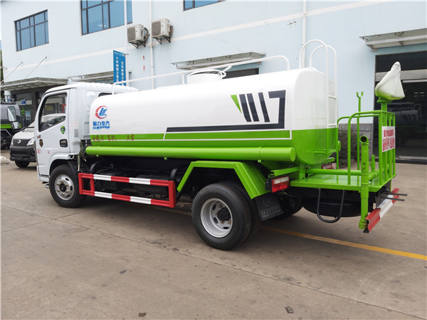 其它配置為灑水車的一般配置:前沖、后灑、帶側噴、帶后工作平臺、綠化灑水高炮(炮噴射形狀可調節:直沖、大雨、中雨、毛毛雨、霧狀、可連續調節,360°旋轉),配消防接口,自流閥,濾網,帶自吸自排功能。是一款集灑水、應急消防于一體的多功能灑水車。不管是園林、公路、工程建筑等等都少不了它。配備朝柴、錫柴97馬力柴油環保發動機。5噸東風多利卡國六灑水車針對于不需要上牌的客戶來講,經濟又實惠。