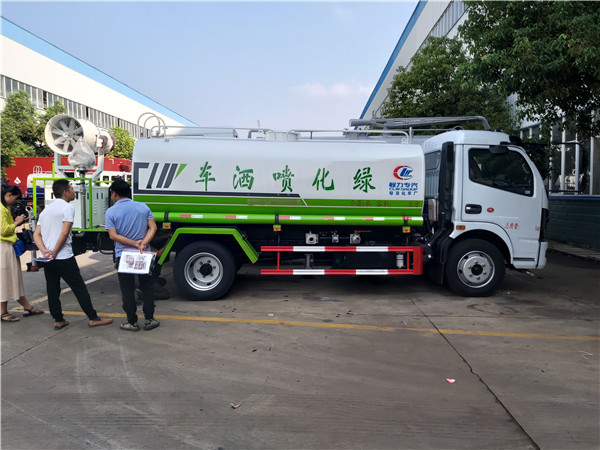 2.前沖后灑,帶側噴,后置工作臺,平臺上安裝綠化灑水高壓炮(炮噴射形狀可以調成直沖狀,大雨,小雨,毛毛雨,炮可以360°旋轉,射程>28米),可改裝駕駛室操作。