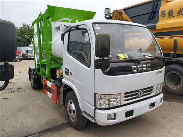 餐廚垃圾車(以下簡稱垃圾車)是用于城鎮內的垃圾收集、轉運、卸料作業的專用車輛。該車是由汽車底盤、自卸油缸、提升機總成、頂蓋(選裝)、附車架、垃圾箱體等組成。該車操作由液壓控制系統來完成,控制方式可以為手動或電氣控。該車主要用于城鎮垃圾的垃圾收集、轉運和卸料。