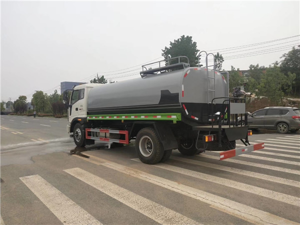 福田灑水車的高噴射,又稱:綠化灑水高炮,灑水車后工作平臺配備高射槍一支,根據需要可調360度旋轉,并可調節成霧狀、柱狀、大雨、中雨、毛毛雨等形態,柱狀射程可達28m以上,霧狀射程可達15m以上。灑水車高噴射主要用于園林綠化,花草的灌溉及高大樹木的沖洗、降塵,也可用于護欄清洗和路面養護,緊急情況下可以用于消防滅火。