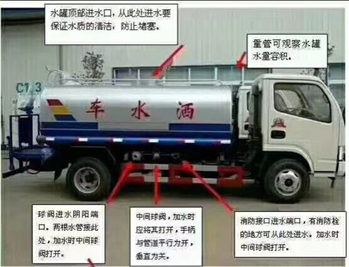溫馨提示:這種方法不適合在冬季使用,以免灑水車罐體內水結成冰,凍裂泵體或罐體。排污時請使用位于水箱最低點的排污口。