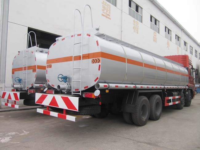 東風天龍前四后八自流瀝青運輸車主要用于南方地區短途液體瀝青運輸,主要加裝高科技保溫材料,后尾部加裝單口不銹鋼出料口和不銹鋼閥門。