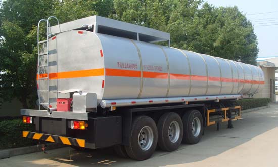 38立方液態瀝青半掛運輸車:采用瀝青泵進泵出,柴油燃燒器加熱系統,保溫系統。