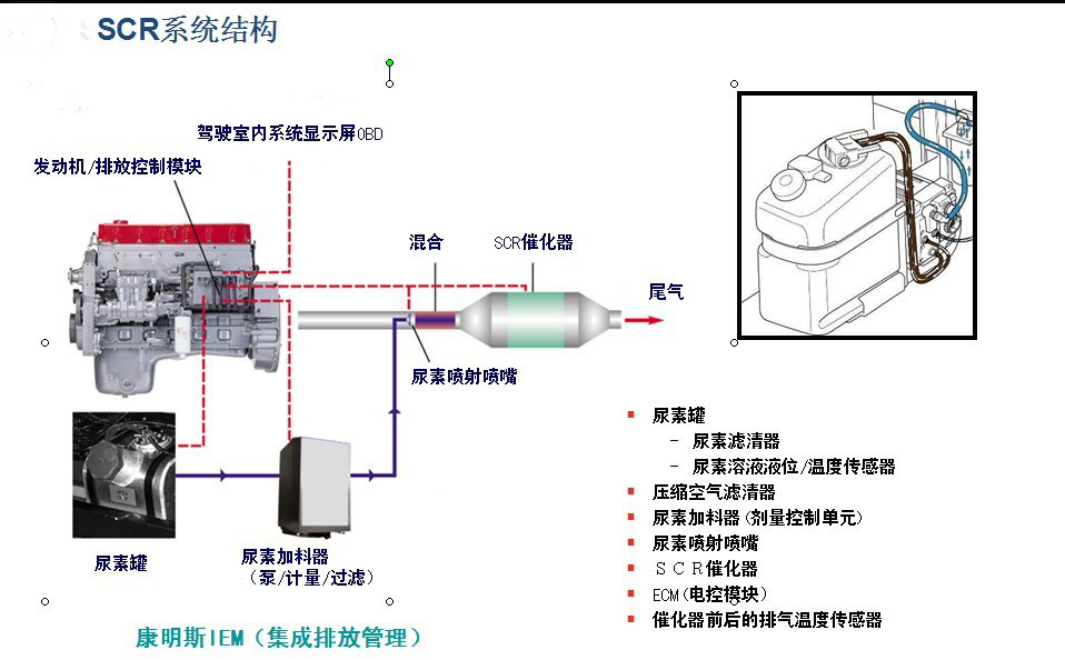 柴油發(fā)動(dòng)機(jī)的排放是指發(fā)動(dòng)機(jī)在工作過(guò)程中產(chǎn)生的有害氣體,主要有CH(碳?xì)浠衔铮?、NOx(氮氧化物)、PM(微粒,碳煙)、CO(一氧化碳)為主。國(guó)3靠提高發(fā)動(dòng)機(jī)噴油壓力,提高燃料的燃燒充分性,可以降低多數(shù)有害氣體的排放水平。但是高溫、高壓易導(dǎo)致NOx(氮氧化物)排放物的提升,國(guó)4需引入發(fā)動(dòng)機(jī)機(jī)外凈化技術(shù)。國(guó)Ⅳ階段必須應(yīng)用一種后處理技術(shù),就是使用排氣后處理技術(shù)來(lái)控制排放。國(guó)際上,絕大部分發(fā)動(dòng)機(jī)制造商在改進(jìn)歐Ⅲ發(fā)動(dòng)機(jī)的基礎(chǔ)上,再加上SCR或EGR+DOC+DPF等后處理系統(tǒng)來(lái)實(shí)現(xiàn)的。