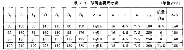 放油閥常用的有球閥、蝶閥等。目前各類加油車大多用鋁合金球閥,通徑¢25mm的球閥保留了原閘板閥的外部連接尺寸,通徑¢50mm、¢65mm、¢80mm、¢100mm四種規格的球閥主要尺寸列于表3-2,結構如圖3-26所示。這樣,與管道的連接法蘭尺寸都可實現標準化,軟管接頭和接頭閥亦采用國際通用的通徑¢63.5mm(¢2.5in).